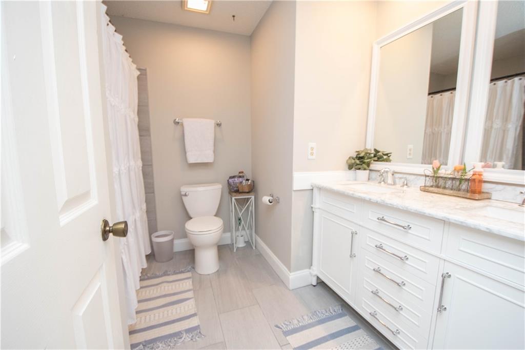 The Primary suite, located on the main level, offers a tranquil retreat with its spacious layout and luxurious en-suite bathroom. With three fully remodeled bathrooms, no detail has been spared in creating a spa-like experience for you and your guests.